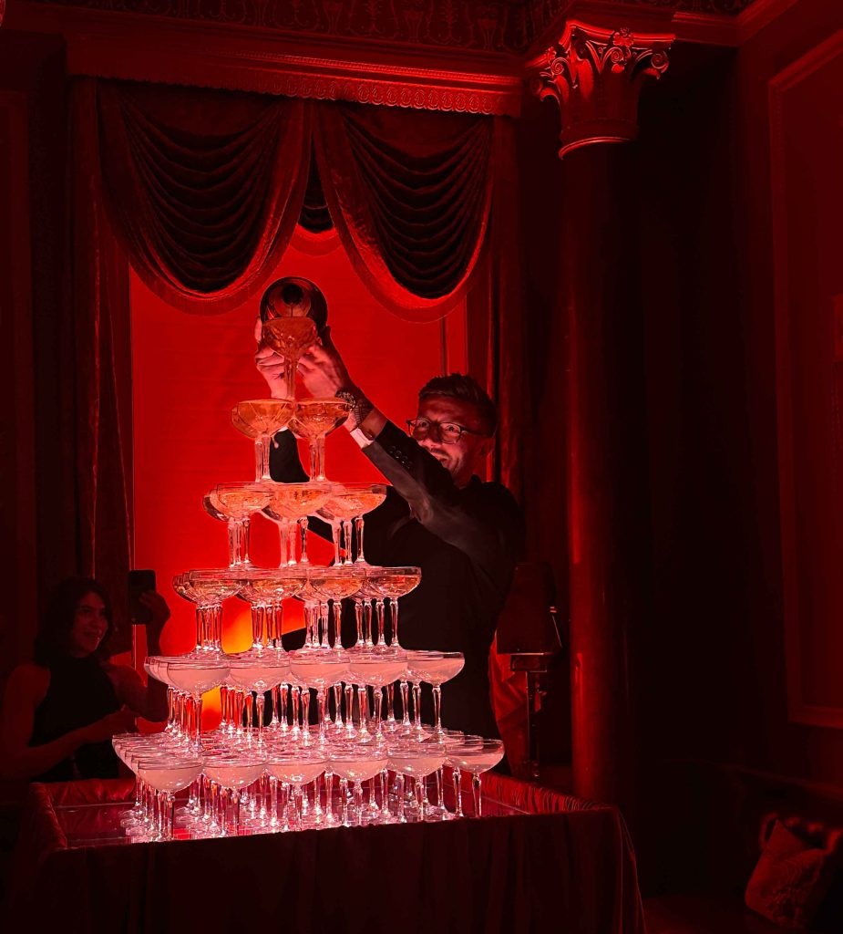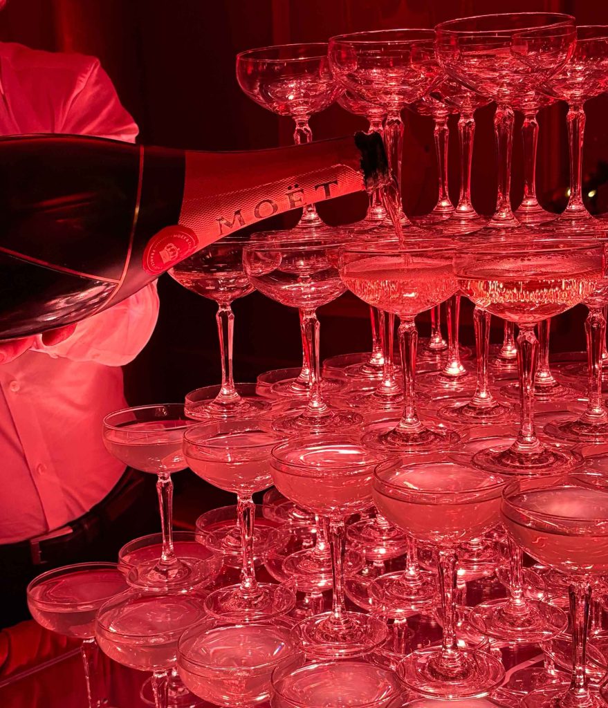 A champagne tower isn’t just a drink display — it’s an experience. It’s the moment that sets the tone for the evening, adding glamour, theatre, and a little bit of luxury magic to your event.